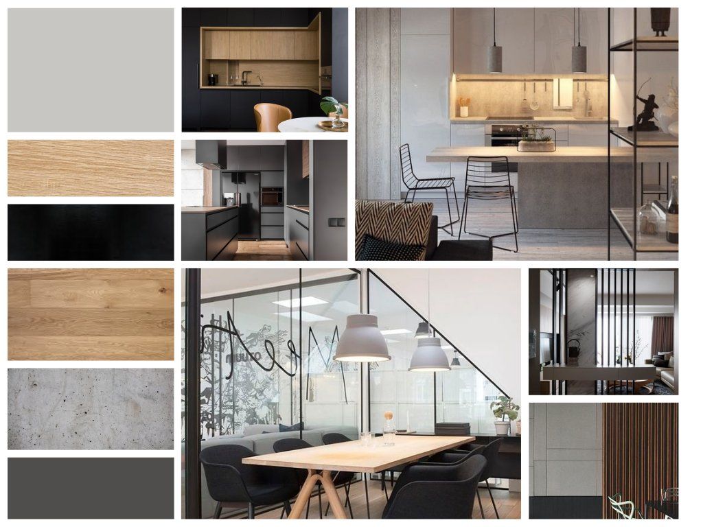 בחרנו בפלטה של חומרים טבעיים כגון: פרקט טבעי, עץ ומתכת, יחד עם צבעוניות וחומריות של בטון ומונוכרום של צבעים וחומרים אפורים ושחורים.