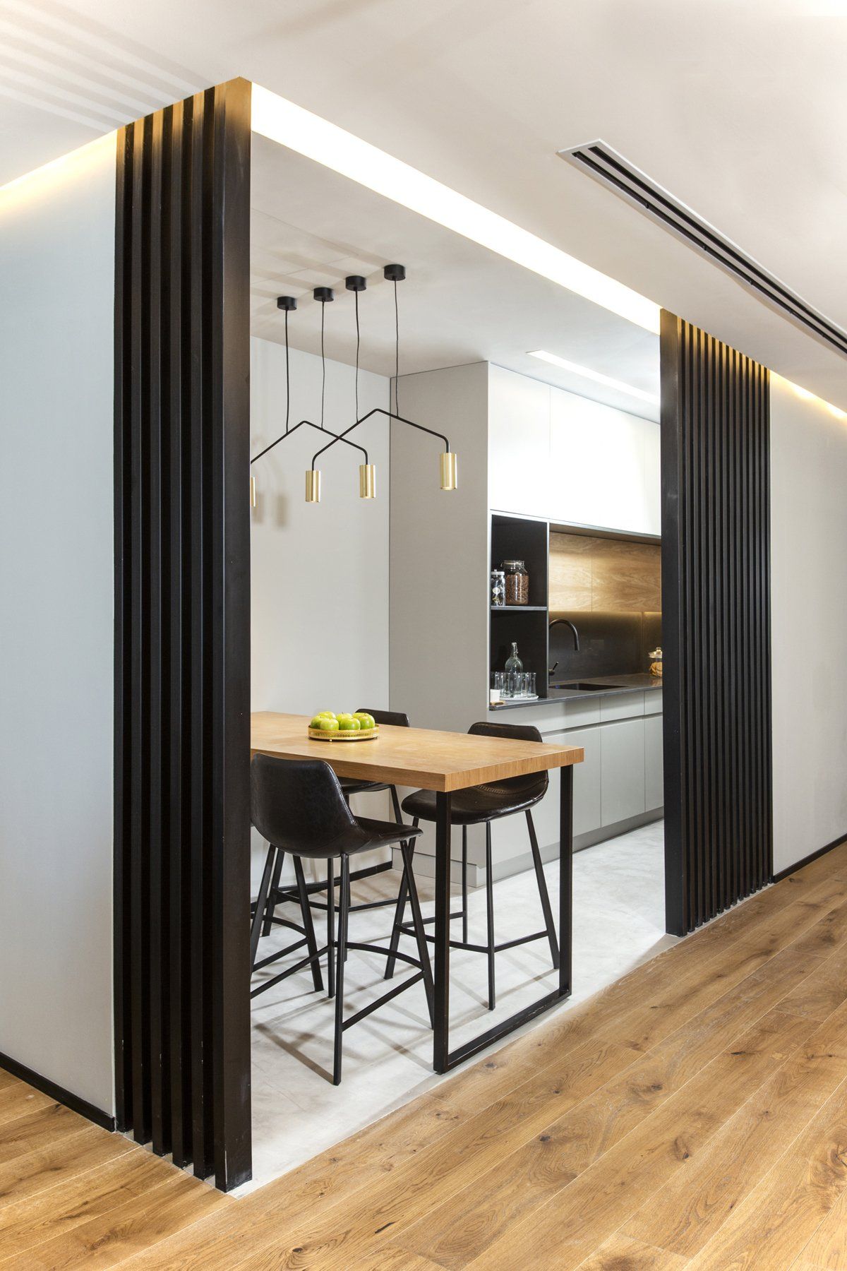 מראה מודרני, מרווח ומעוצב ברמה גבוהה! אך עדין ביתי וחמים, שירגיש מואר, למרות החלל בצורת "L" שהגדיר כניסת האור הטבעי