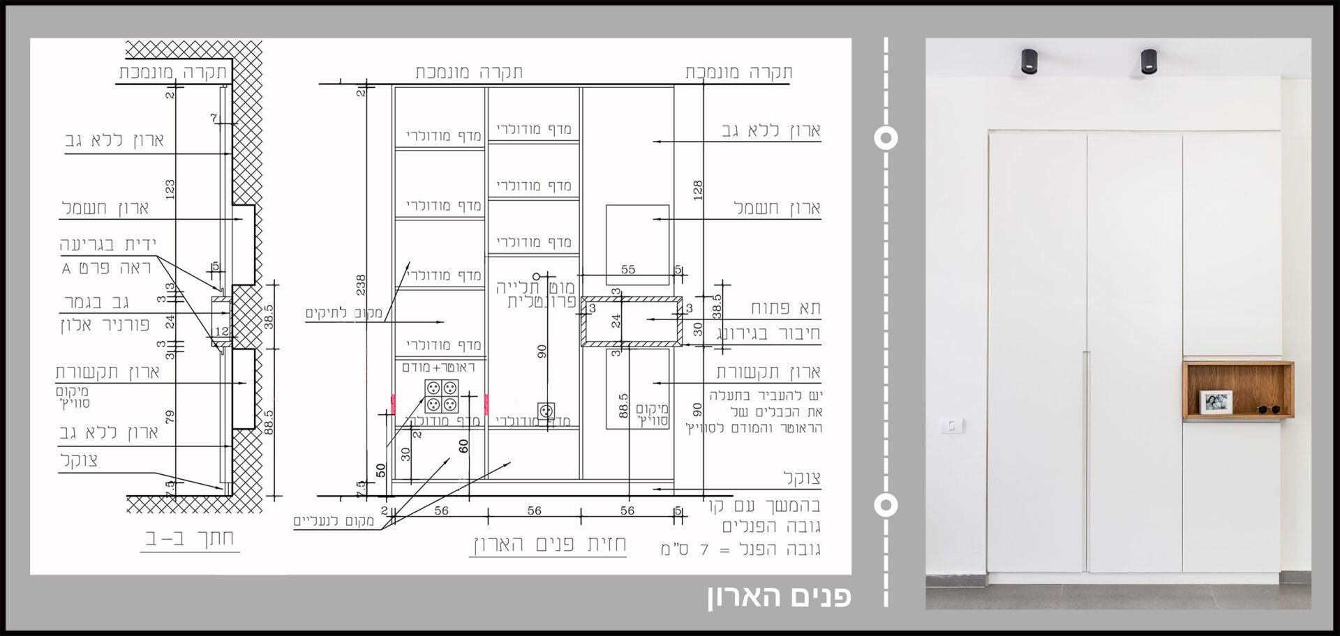 אפשר לתכנן ארונות בנגרות מיוחדת ובעיצוב אישי, עם אותם הגוונים והחומרים שכבר קיימים באותו האזור.