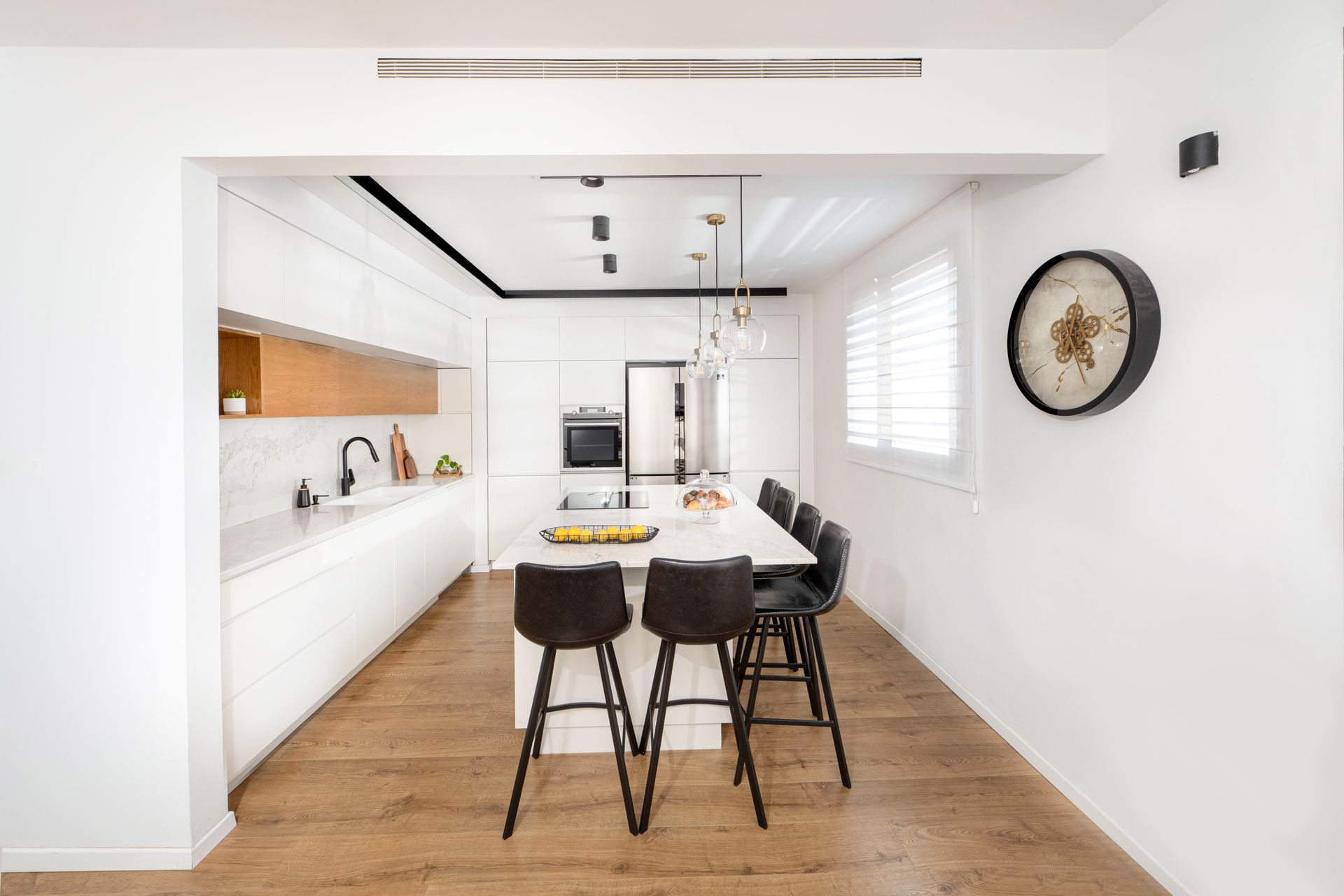 אפשר, למשל, להוסיף חומריות עם ידית שחורה/פליז, וזה בהחלט יכול לשדרג את מראה המטבח ולהעניק לו מראה יותר אקלקטי.