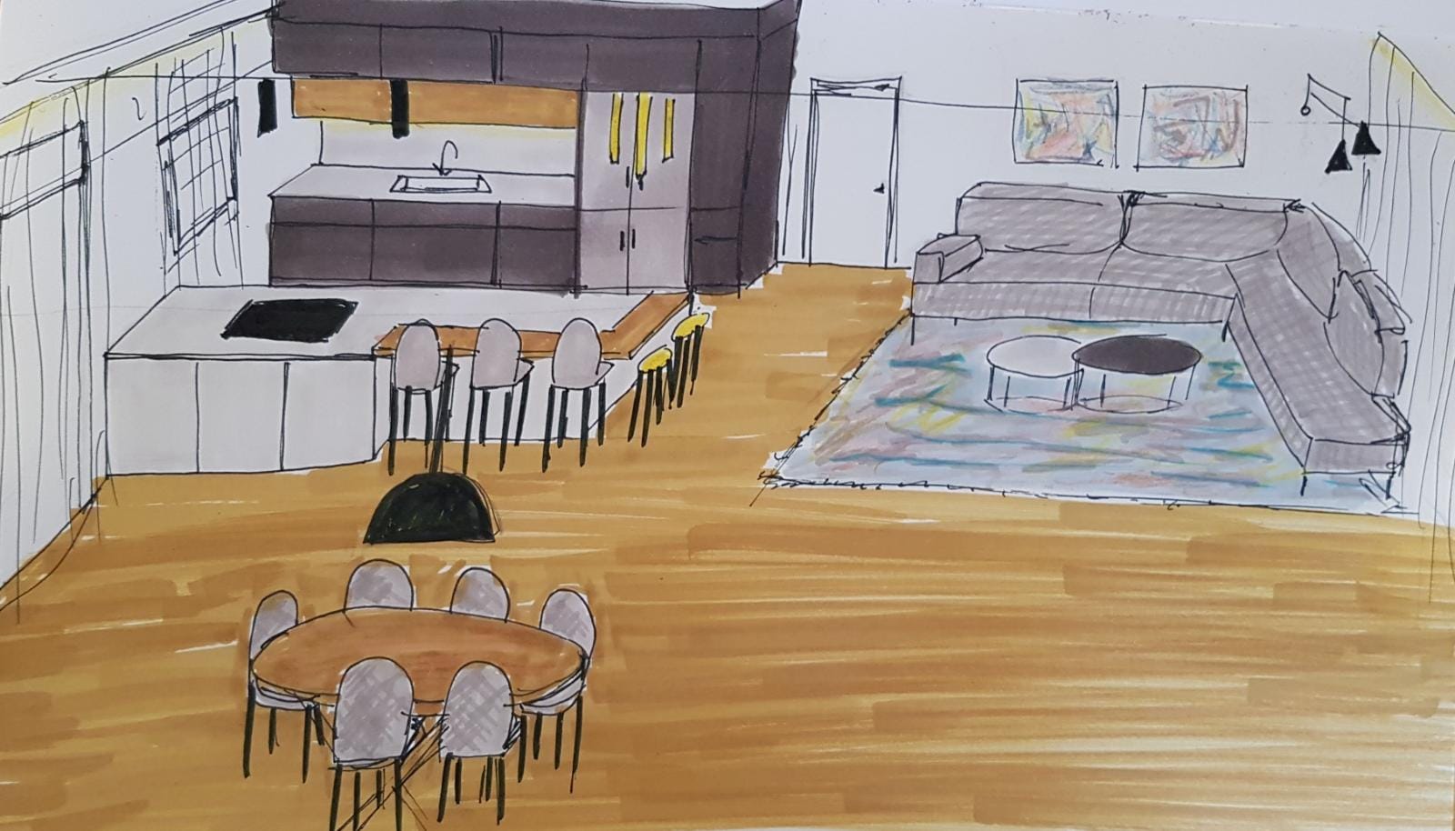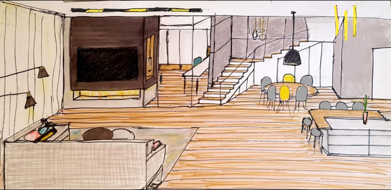 ללקוחות היה חשוב ליצור תחושה של מרחב ותנועה ליניארית ופתוחה, אך עדיו עם תחושה של "סדר" פונקציונאלי.